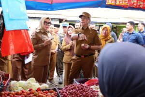 Bupati Barru A. Ina Kartika Sari dan Wakil Bupati Barru Abustan A. Bintang menyempatkan berdialog dan mendengarkan keluh kesah para pedagang.